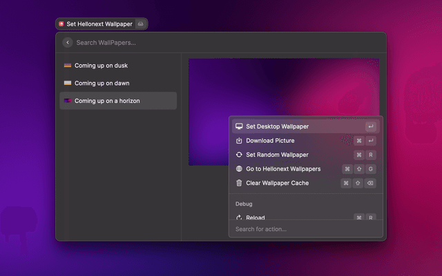 Search images or collections on Unsplash, download, copy or set them as wallpaper without leaving Raycast!