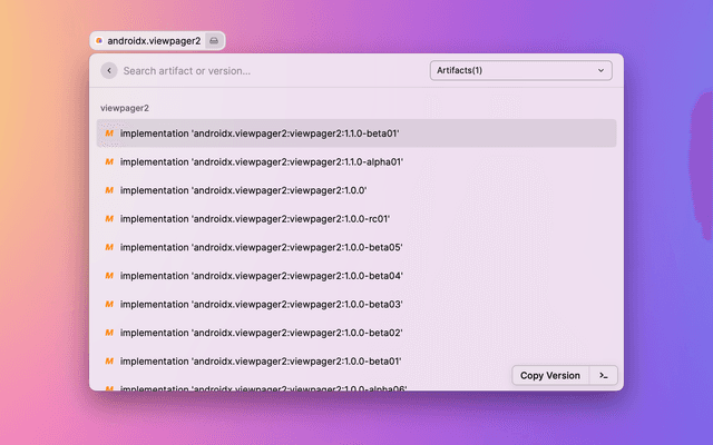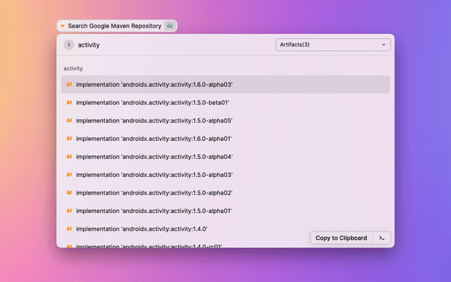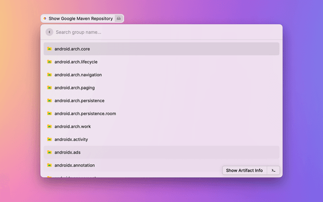 Show and search for artifacts in Google's Maven repository.