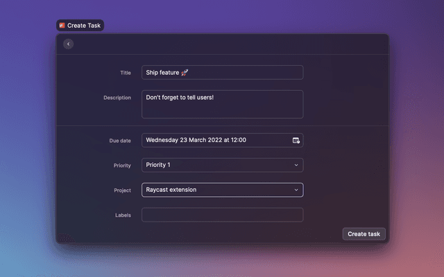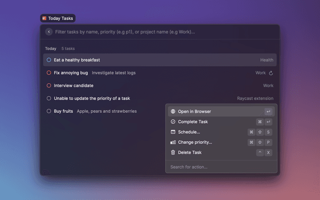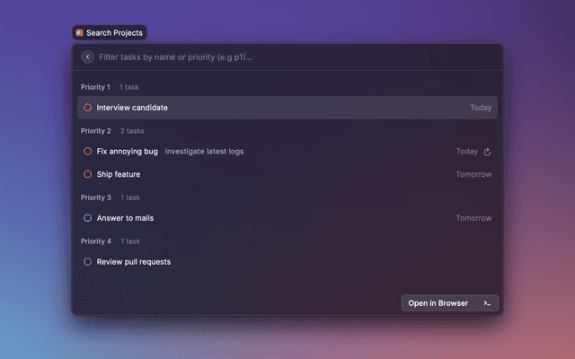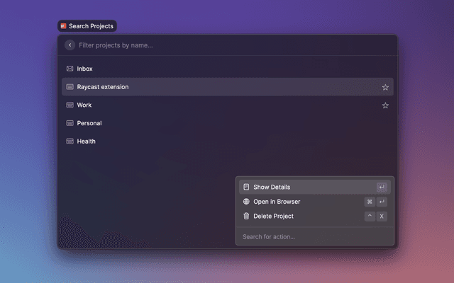 Bring Todoist to Raycast so that you can manage your tasks easily. No more context-switching!